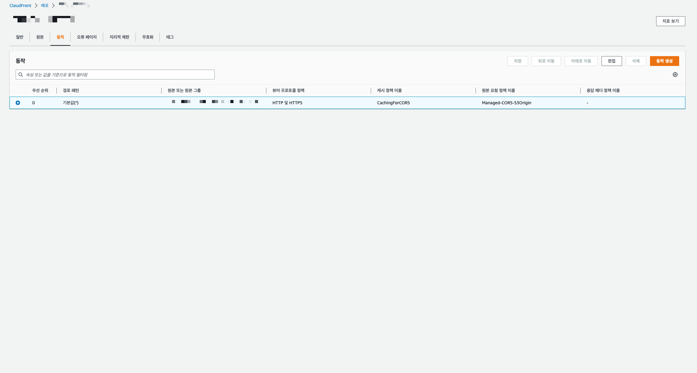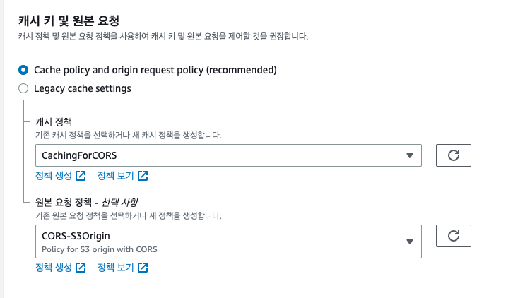 원본 요청 정책은 CORS-S3Origin 으로 설정하고