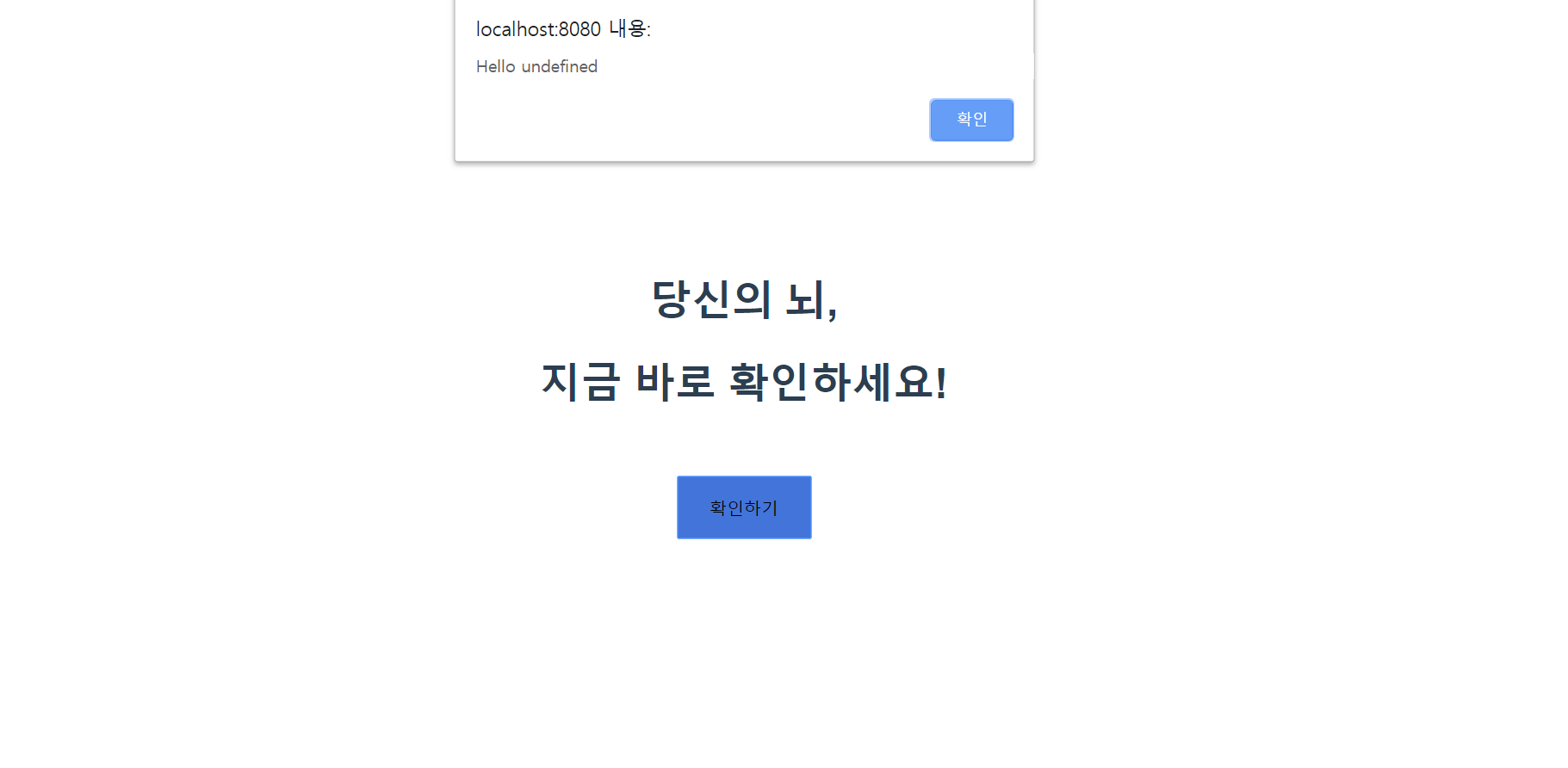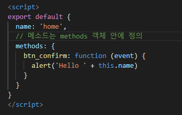 여기서 this는 vue의 인스턴스를 가르키는데 내가 만든 코드에서는 vue인스턴스가 존재하지않아서 alert로 출력을 했을때 undefined로 뜨는 것을 볼 수 있다.
